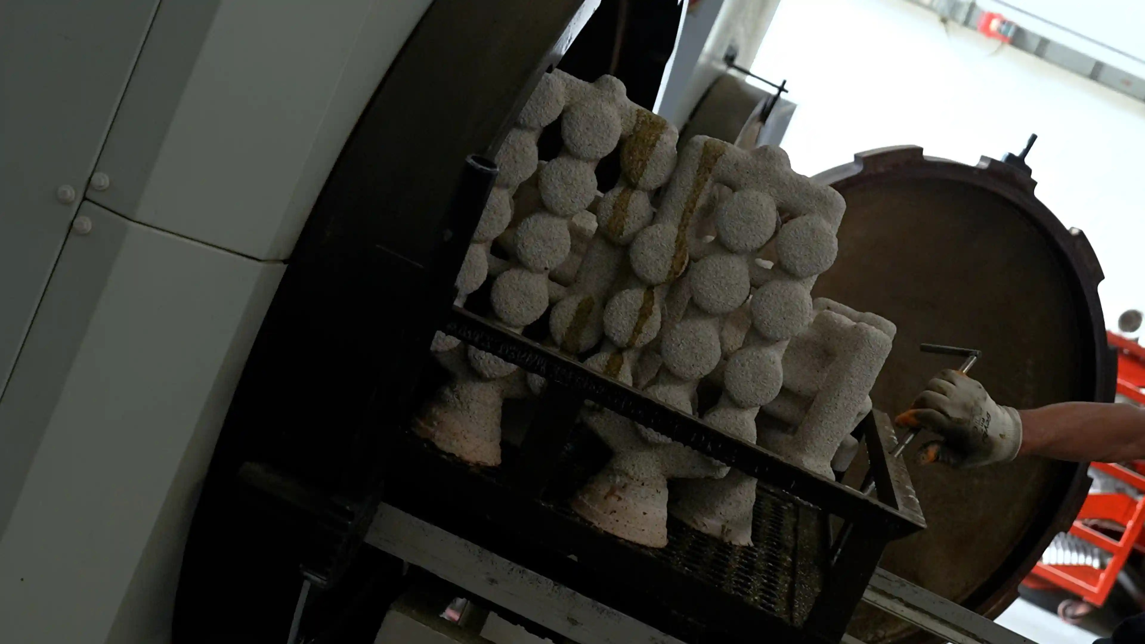 Kurutulmuş salkımlar, otoklav adı verilen buhar kazanında yüksek basınç ve sıcaklık altında mum boşaltma işlemine tabi tutularak nihai kalıp haline getirilir.